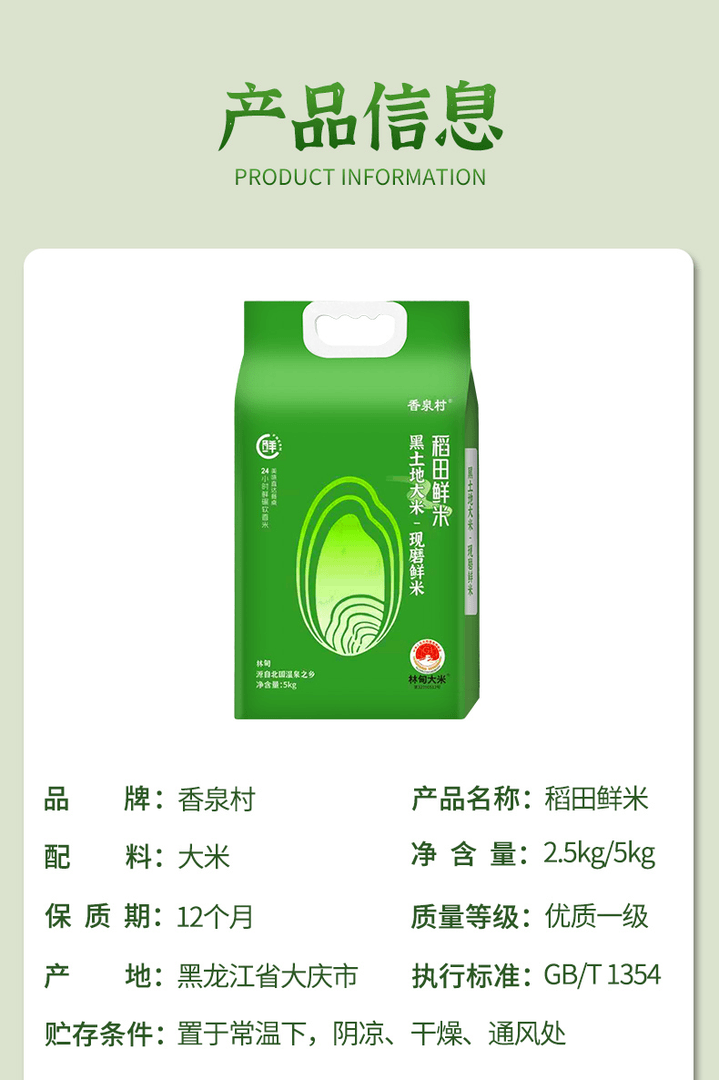 香泉村【2025】(5斤装)东北黑土地鸭田稻田大米真空鲜米软糯可口家庭装*0