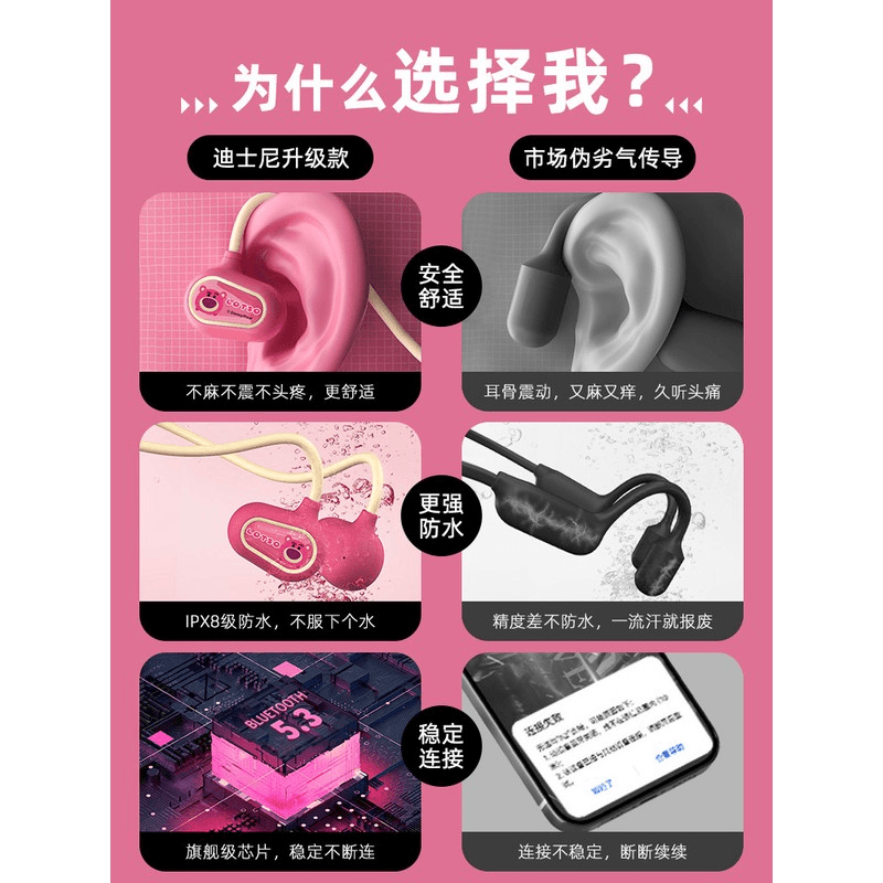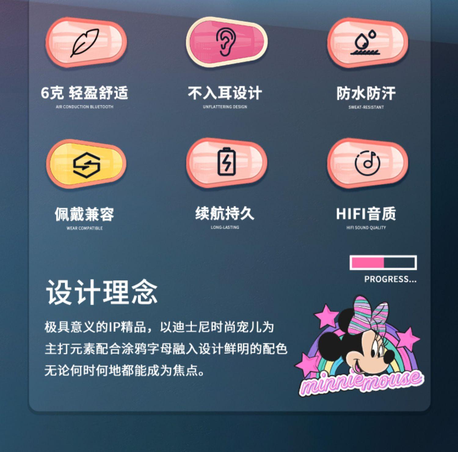 迪士尼骨传导气传感无线不入耳运动蓝牙耳机