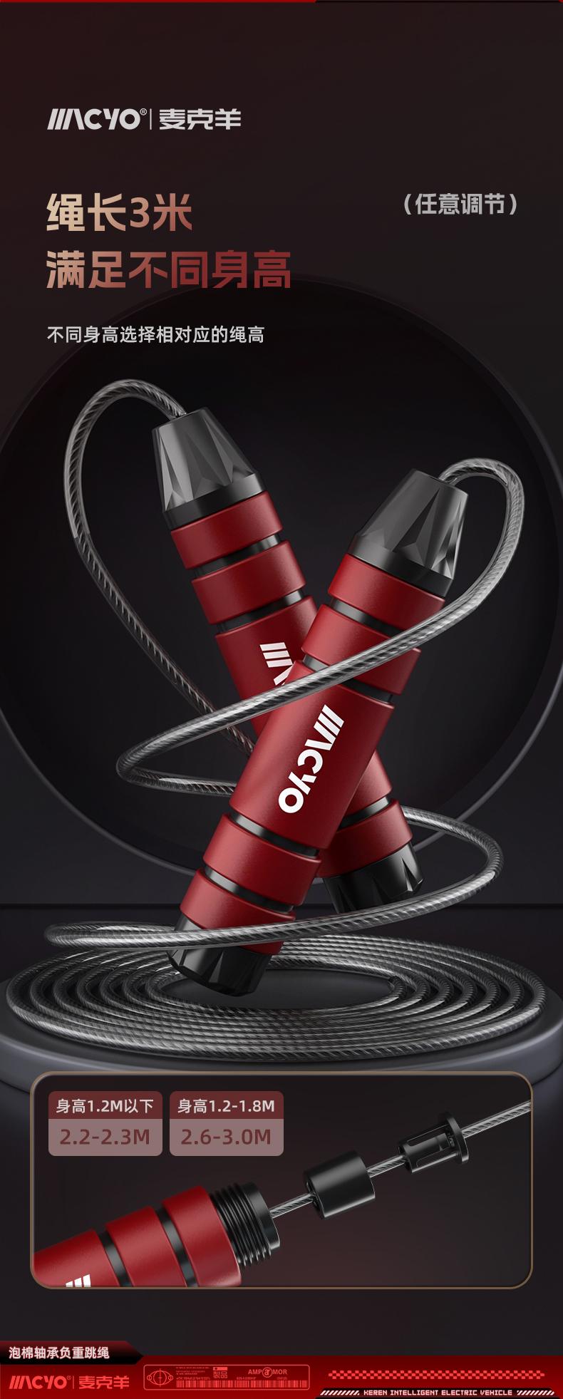 麦克羊/MACYO专业竞速型钢丝负重跳绳考试提速中考新手专用初学者*0