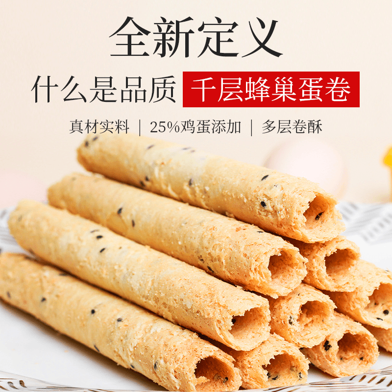 【3包装60gx3(共9根)】手工鸡蛋卷千层蜂窝牛蒡棒老式传统奶油空心怀旧零食脆筒独立包装*0