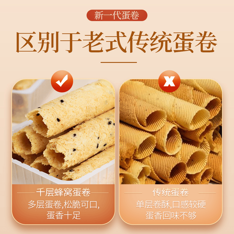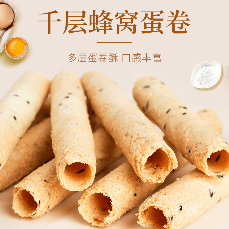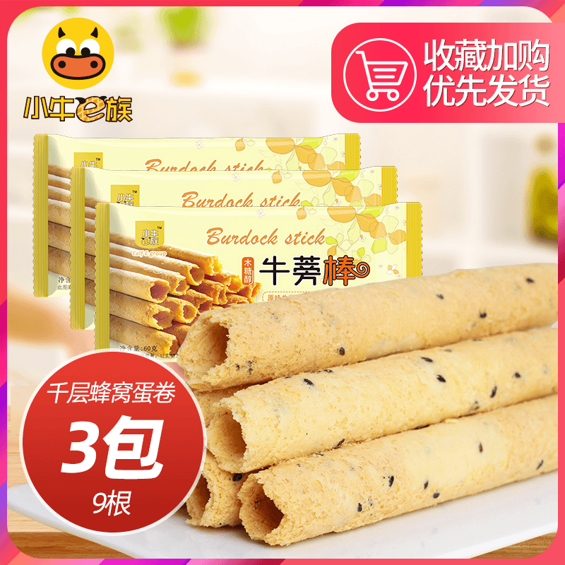 【3包装60gx3(共9根)】手工鸡蛋卷千层蜂窝牛蒡棒老式传统奶油空心怀旧零食脆筒独立包装*
