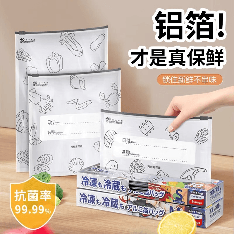 【超划算 90个装】铝箔保鲜密封保鲜袋家用冰箱食物冷冻专用收纳袋*0